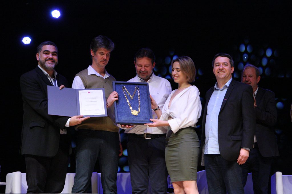 No dia 09/10, a abertura oficial do 21º CBA foi, sobretudo, marcada por uma mistura de emoções. As músicas apresentadas pela Orquestra Villa Lobos, projeto social que há 25 anos ensina música a jovens da periferia de Porto Alegre, abriram com delicadeza uma noite marcada por posições firmes e apelos urgentes. Além disso, foram realizadas duas homenagens extremamente significativas para a Arquitetura e Urbanismo. A primeira foi a entrega do Colar de Ouro do IAB a Clovis Ilgenfritz da Silva, recebida pelo filho e presidente do CAU/RS, Tiago Holzmann da Silva, acompanhado dos irmãos Camilo e Letícia; e a homenagem à Briane Bicca, na ocasião representada pelo marido, Paulo, e os filhos Sofia e Diogo.
