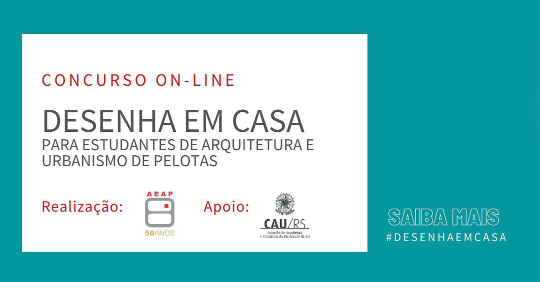 Com o apoio do CAU/RS, a Associação de Engenheiros e Arquitetos de Pelotas (AEAP) lançou o concurso #DesenhaEmCasa, voltado para estudantes de Arquitetura e Urbanismo do município. A iniciativa é uma proposta de valorização do desenho – uma das habilidades esperadas de quem irá atuar nesta profissão – e desafia os estudantes a buscarem formas de retratar o mundo privado em fase de isolamento social.
