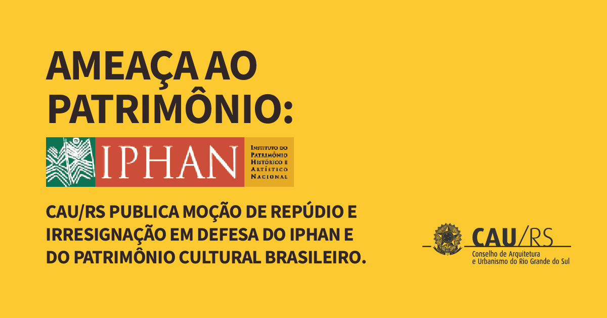 O CAU/RS repudia a forma desrespeitosa utilizada pelo presidente, ao referir-se com descaso ao valoroso e necessário trabalho do Iphan e ressalta a preocupação com o fato de que esta manifestação tenha sido recebida com aplausos e risos por parte da plateia, como se pode comprovar através de vídeo amplamente divulgado nas redes sociais, evidenciando que o entendimento sobre a importância do Patrimônio Cultural Brasileiro, bem como de sua proteção e conservação não alcança o governo federal, e boa parte da elite empresarial brasileira.