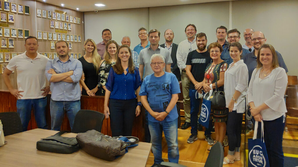 No começo da tarde, às 15h, o presidente do CAU/RS, arquiteto e urbanista Tiago Holzmann da Silva, apresentou o Conselho e o Escritório Regional em Sessão Plenária da Câmara de Vereadores Municipal. Após, ocorreu o encontro com profissionais da cidade e região.