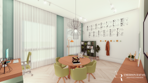 “O meu projeto é diferente: projetei espaços para cada necessidade. Não há clínica igual no Brasil. No meu caso, por exemplo: como um médico vai salvar minha vida em caso de urgência ou de acidente se ele não sabe Libras? A minha deficiência não é visível. Quando vamos ao médico, precisamos conversar, falar sobre nossas dores, entender as doenças. São questões particulares. Eu vou precisar estar sempre junto com a minha mãe? O surdo precisa ser independente”, explica Emerson, que em seu projeto buscou eliminar as barreiras arquitetônicas, de comunicação, de acesso físico e de equipamentos com foco no bem-estar dos usuários.