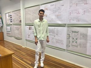 Seu Trabalho Final de Graduação (TFG), sob orientação da professora Kelly Pavan, foi nota 10. Ele é autor do projeto “Liberté – Clínica Especializada no Atendimento de Pessoas com Deficiência”, que visa promover saúde por meio da arquitetura e proporcionar respeito à condição e característica da pessoa com deficiência a partir de conceitos da neuroarquitetura.
