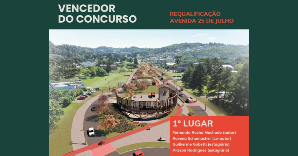 Na última terça-feira (1º/02), na Câmara Municipal de Flores da Cunha, foi realizada a cerimônia de divulgação dos vencedores do Concurso Público Nacional de Projeto de Arquitetura e Urbanismo “Avenida 25 de Julho”, promovido pela Prefeitura Municipal de Flores da Cunha em parceria com o Instituto de Arquitetos do Brasil (IAB RS) e com o apoio do Conselho de Arquitetura e Urbanismo (CAU/RS) e da Associação Brasileira de Arquitetos Paisagistas (ABAP).