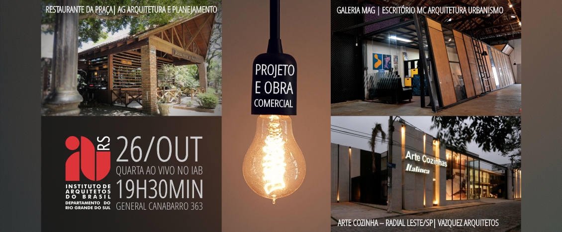 Nesta quarta-feira, 26 de outubro, o Instituto de Arquitetos do Brasil (IAB RS) irá apresentar três projetos selecionados para o Ciclo de Palestras Projeto & Obra. O evento ocorre a partir das 19h30 com a apresentação do arquiteto Alexandre Giorgi, da Alexandre Giorgi Arquitetura e Planejamento, sobre o projeto Restaurante da Praça, em Uruguaiana.