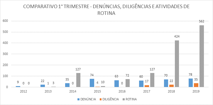 O quadro comparativo revela um forte crescimento nos último 2 anos das atividades de rotina da Fiscalização.