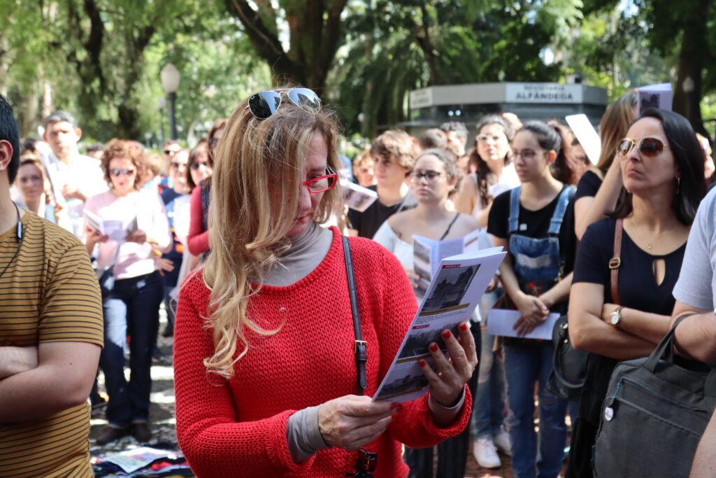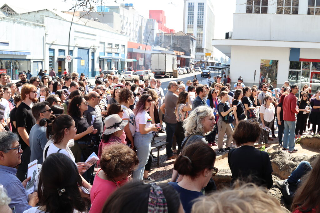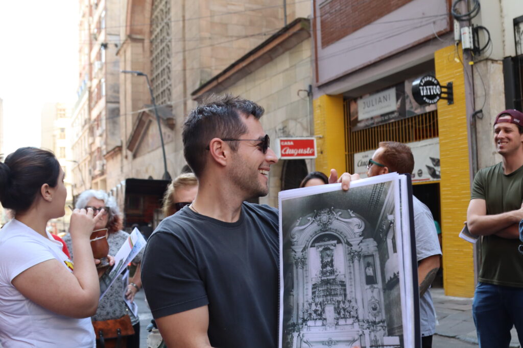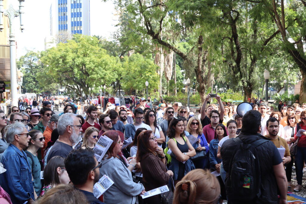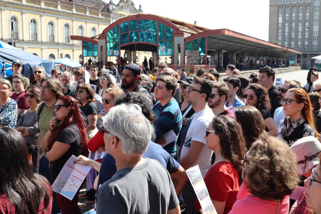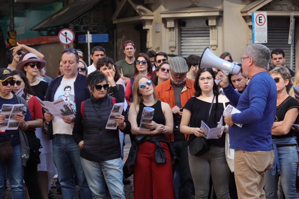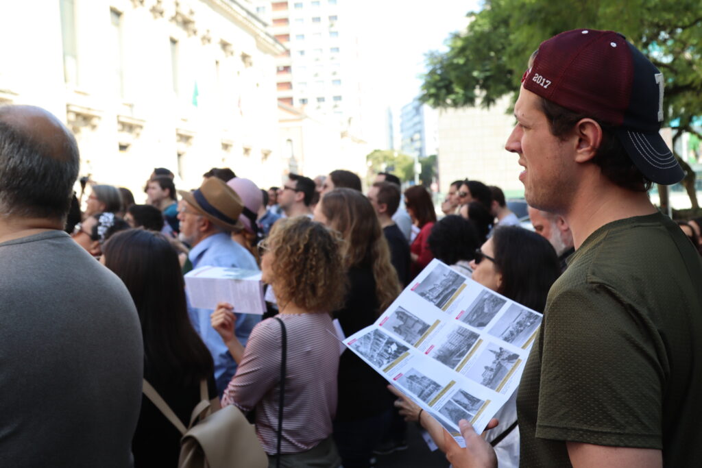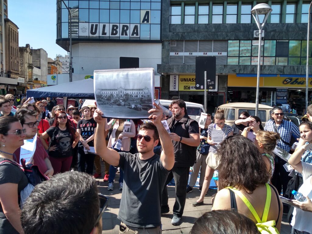 No último sábado, 17 de agosto, o Conselho de Arquitetura e Urbanismo (CAU/RS) promoveu o evento Caminhada da Perda – Arquitetura Demolida, celebrando o Dia Estadual do Patrimônio Cultural. Organizado pela Comissão Temporária do Patrimônio Histórico (CTPH), o encontro reuniu cerca de 200 pessoas para visitar prédios e monumentos do Centro Histórico de Porto Alegre, em uma caminhada que falou de história, cultura e, claro, arquitetura e urbanismo.