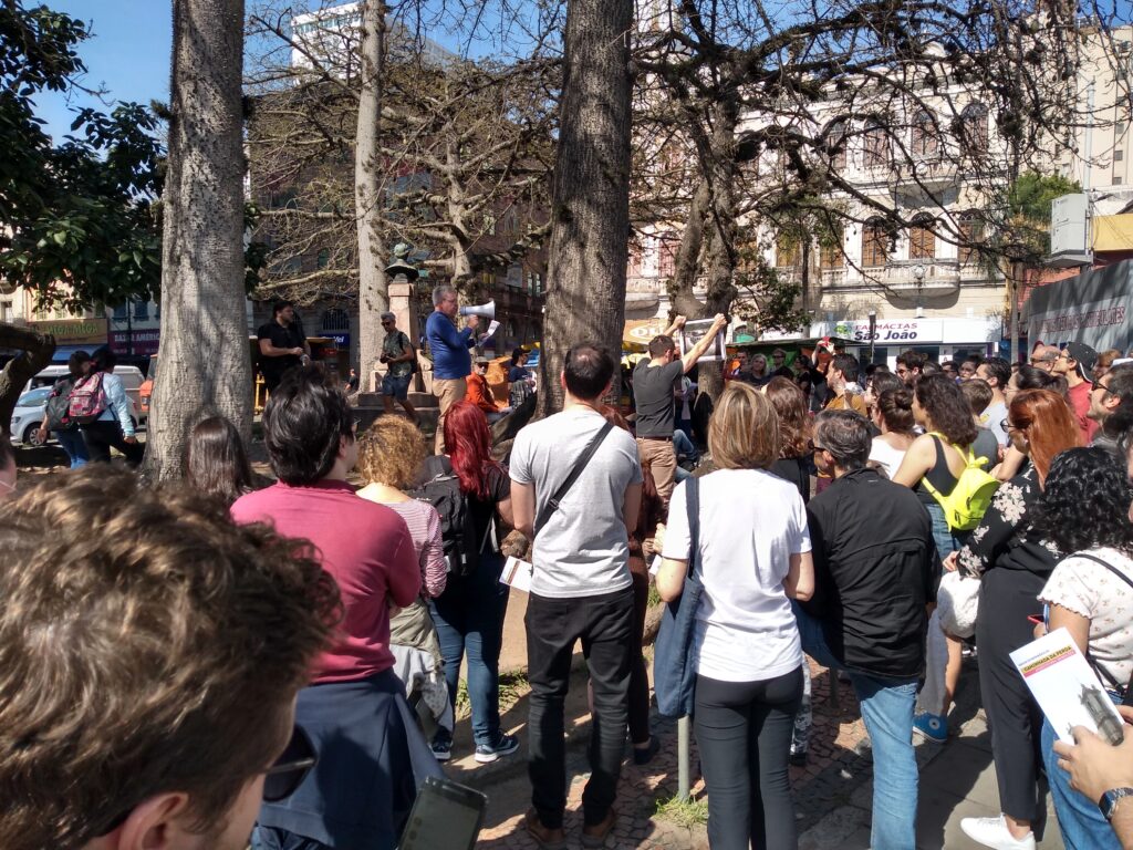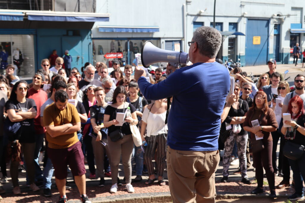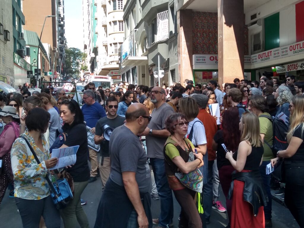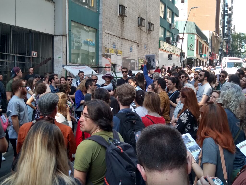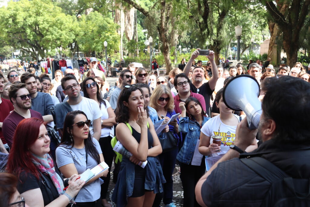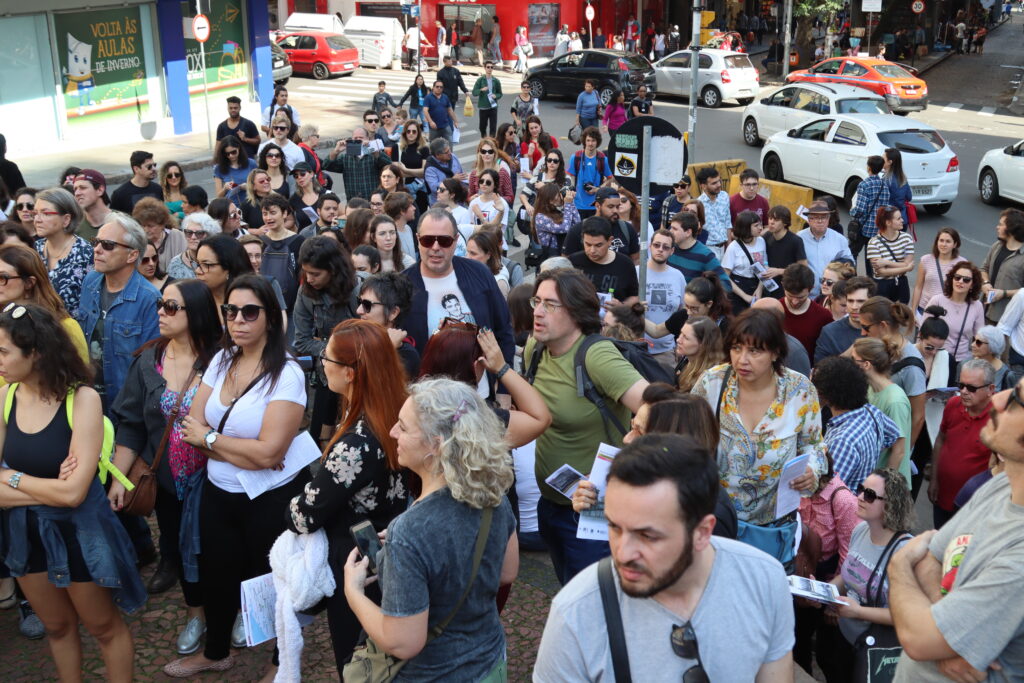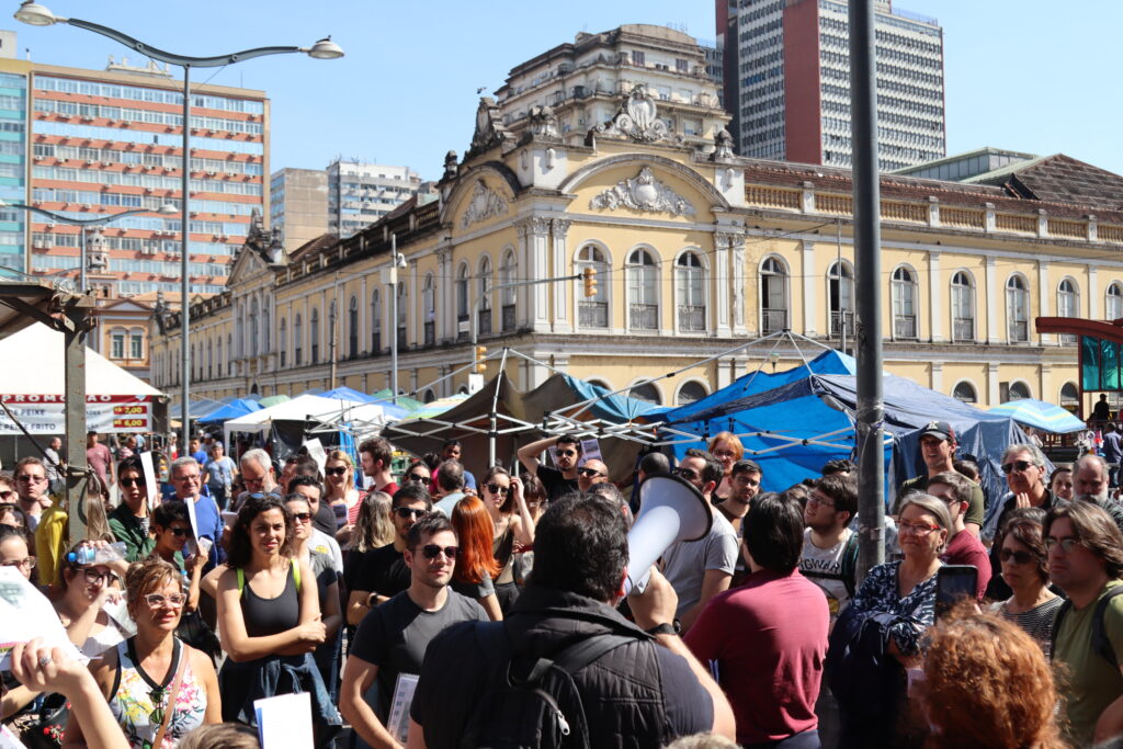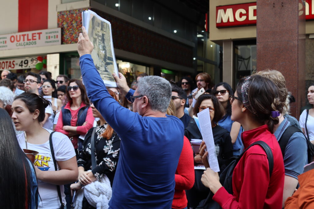 No último sábado, 17 de agosto, o Conselho de Arquitetura e Urbanismo (CAU/RS) promoveu o evento Caminhada da Perda – Arquitetura Demolida, celebrando o Dia Estadual do Patrimônio Cultural. Organizado pela Comissão Temporária do Patrimônio Histórico (CTPH), o encontro reuniu cerca de 200 pessoas para visitar prédios e monumentos do Centro Histórico de Porto Alegre, em uma caminhada que falou de história, cultura e, claro, arquitetura e urbanismo.