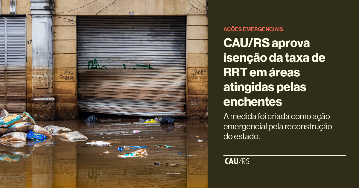 Trata-se de uma das medidas propostas pelo Conselho no enfrentamento às enchentes que devastaram o território gaúcho. Os critérios são relacionados à Resolução do CAU/BR nº 241, de 22 de setembro de 2023, quando municípios do Vale do Taquari enfrentaram fortes chuvas.