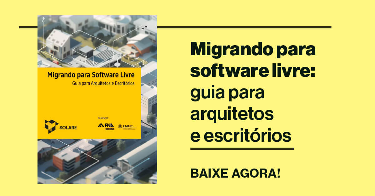 O CAU/RS e a Federação Nacional dos Arquitetos e Urbanistas (FNA) acabam de lançar o livro digital “Migrando para soluções abertas: guia para arquitetos e escritórios”. A publicação é mais uma ação do projeto Solare, resultado da parceria firmada pelas duas entidades para habilitar os profissionais da arquitetura e urbanismo ao universo dos softwares livres. Este movimento democratiza o acesso à tecnologia, reduz custos e empodera os arquitetos a adaptarem ferramentas às suas necessidades específicas.