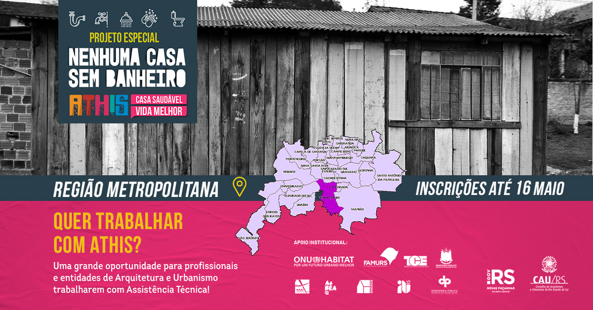 Um novo e importante passo foi dado em relação ao projeto especial Nenhuma Casa sem Banheiro, iniciativa do Conselho de Arquitetura e Urbanismo (CAU/RS). Foi lançado o edital para credenciamento de profissionais e de entidades associativas de profissionais de Arquitetura e Urbanismo, mistas ou exclusivas, sediadas ou com representação atuante nos municípios da Região Metropolitana de Porto Alegre. O documento já está disponível no Portal da Transparência.