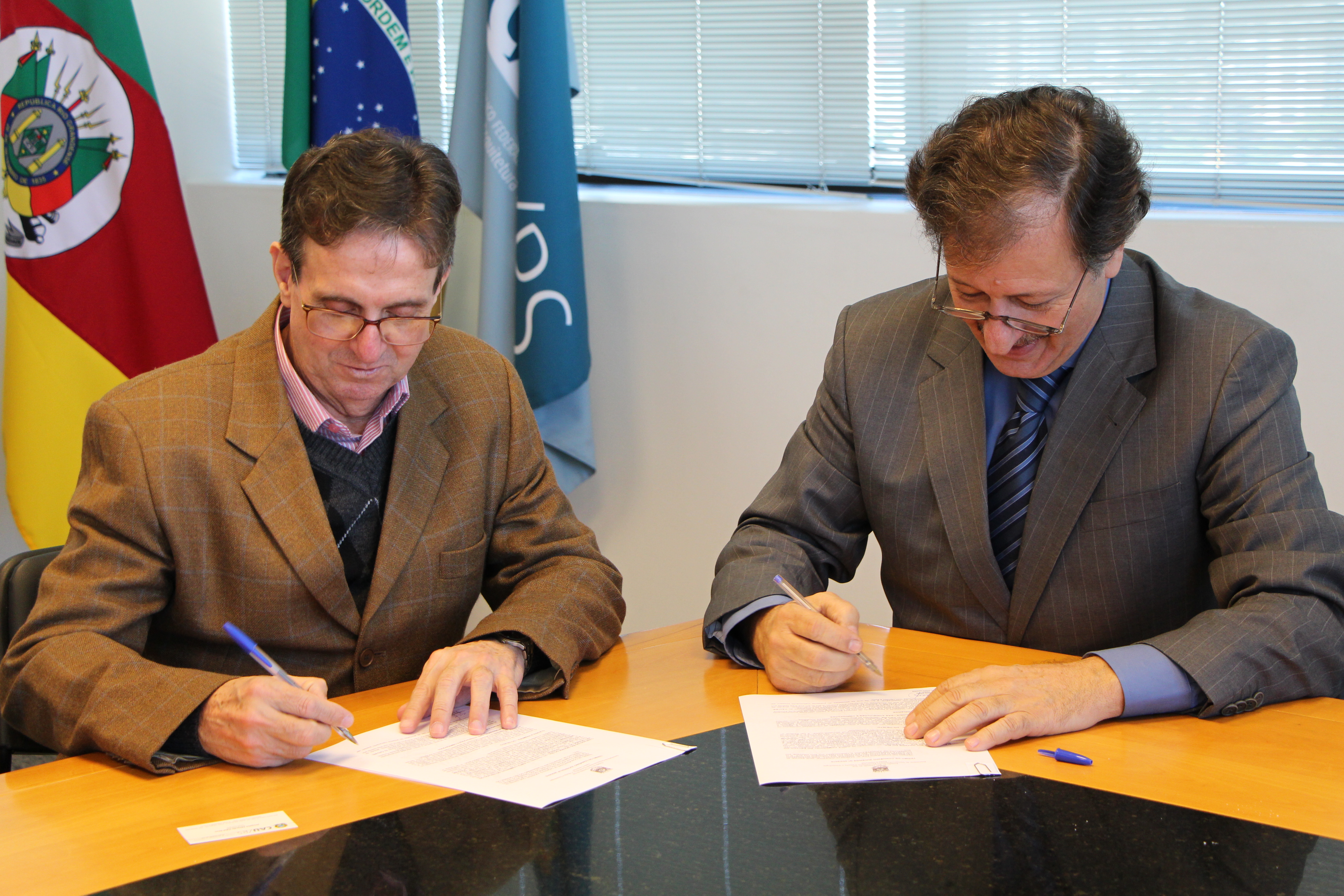 O CAU/RS assinou nesta terça-feira (03/05) um convênio com a Junta Comercial do Rio Grande do Sul (Jucergs). O vice-presidente da Jucergs, Itacir Amauri Flores, e o presidente em exercício do CAU/RS, Joaquim Haas, assinaram o documento e comentaram sobre a importância da parceria.