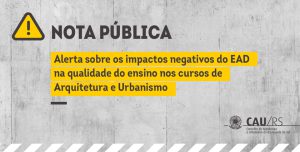 O Conselho de Arquitetura e Urbanismo do Rio Grande do Sul, órgão de fiscalização e controle do serviço prestado à população por seus profissionais registrados, frente às notícias de expansão da graduação universitária com o ensino ‘à distância (EAD), vêm registrar as seguintes posições e fundamentos: