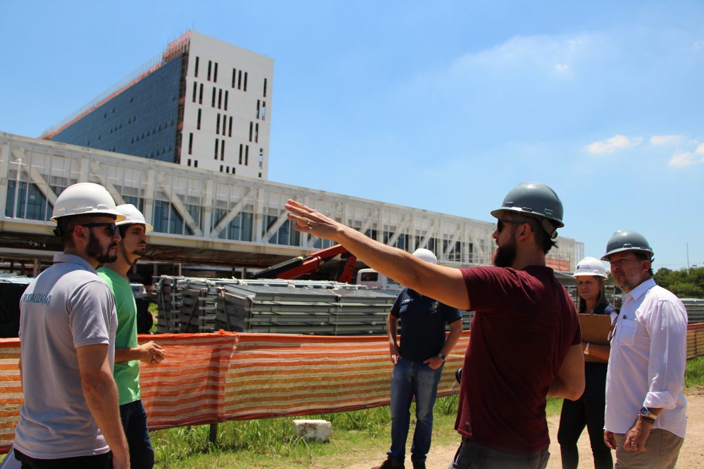 Na última terça-feira (22/01), a equipe de fiscalização do Conselho de Arquitetura e Urbanismo (CAU/RS) fez um trabalho conjunto com a fiscalização do Conselho Regional de Engenharia e Agronomia (CREA-RS) na obra da nova sede da Fecomércio, Sesc e Senac do Rio Grande do Sul. Estavam presentes o presidente do CAU/RS, arquiteto e urbanista Tiago Holzmann da Silva, a Gerente de Fiscalização Marina Leivas Proto, o fiscal Cássio Lorensini e os fiscais do CREA-RS Fernanda Delavi e Pedro Ost, que foram guiados na obra pelo arquiteto e urbanista responsável pelo projeto, Eron Costin.