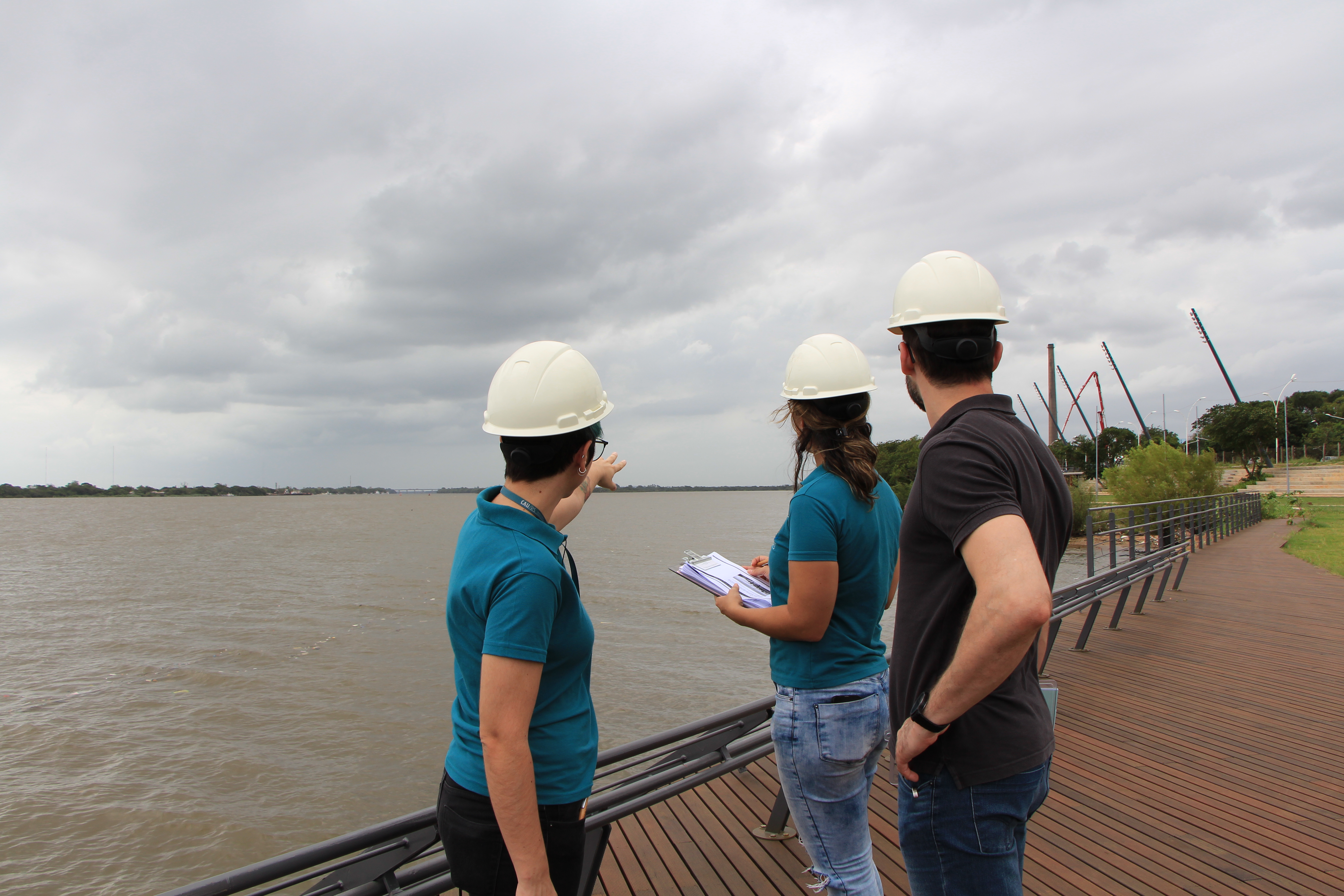 Uma das obras mais aguardadas pela população de Porto Alegre foi fiscalizada pelo Conselho de Arquitetura e Urbanismo (CAU/RS) nesta quinta-feira (25/01). A execução do projeto do arquiteto e urbanista Jaime Lerner, de revitalização da orla do Guaíba, iniciada em outubro de 2015, está em fase final, com 92% do trabalho concluído. Os arquitetos e urbanistas Agentes de Fiscalização do CAU/RS, Andréa Pinheiro, Cássio Lorensini e Karla Riet foram ao local para verificar documentos de responsabilidade técnica e vistoriar a área da obra. O arquiteto e urbanista responsável pela fiscalização da Prefeitura de Porto Alegre, Oscar Eduardo Coelho, e o engenheiro Fábio Éderson Falkenberg receberam a equipe no local, apresentaram a documentação solicitada e esclareceram dúvidas.
