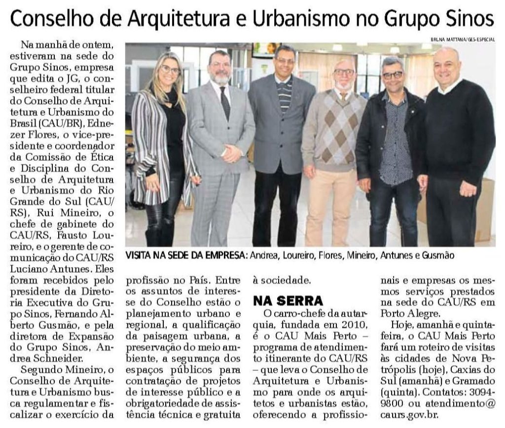 A visita do CAU/RS foi noticiada no Jornal de Gramado, onde o CAU Mais Perto estará nesta quinta-feira, e no Jornal NH, do Grupo Sinos.