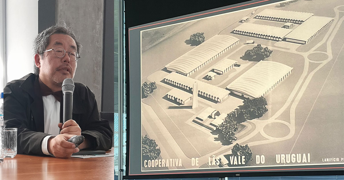 A assinatura foi seguida por uma apresentação do Centro de Memória do CAU/RS, desde sua concepção até os arquivos que já estão sendo tratados e organizados pela equipe responsável no Conselho. Por fim, o arquiteto e urbanista Hugo Segawa, de São Paulo, realizou a apresentação “Por trás e sobre acervos de Arquitetura e Urbanismo”. Reunindo fotos icônicas que fazem parte da Biblioteca da Faculdade de Arquitetura da USP, como o Viaduto do Chá (SP), ele falou sobre a importância da contribuição de pesquisadores para manter histórias vivas. Hugo também apresentou cases como o Centro de Manutenção do Metrô do Rio de Janeiro, o da própria Ceasa/RS, além da Cooperativa Cotrijuí, cujo projeto contou com nomes como o do arquiteto e urbanista Clovis Ilgenfritz da Silva (in memoriam). Ele criticou a falta de cuidado como um ponto que, eventualmente, faz com que muitas obras não tenham seus autores conhecidos. “O Centro de Memória do CAU/RS é parte de um processo mais sistemático de tentar localizar de forma mais direta essas obras, para que isso não aconteça mais”, elogiou. “A presença do prof. Hugo Segawa e seu depoimento chancelando e elogiando a iniciativa e seus primeiros resultados reforça a condição do CAU/RS como pioneiro nacional nas políticas de promoção da profissão”, acrescentou Tiago Holzmann da Silva.