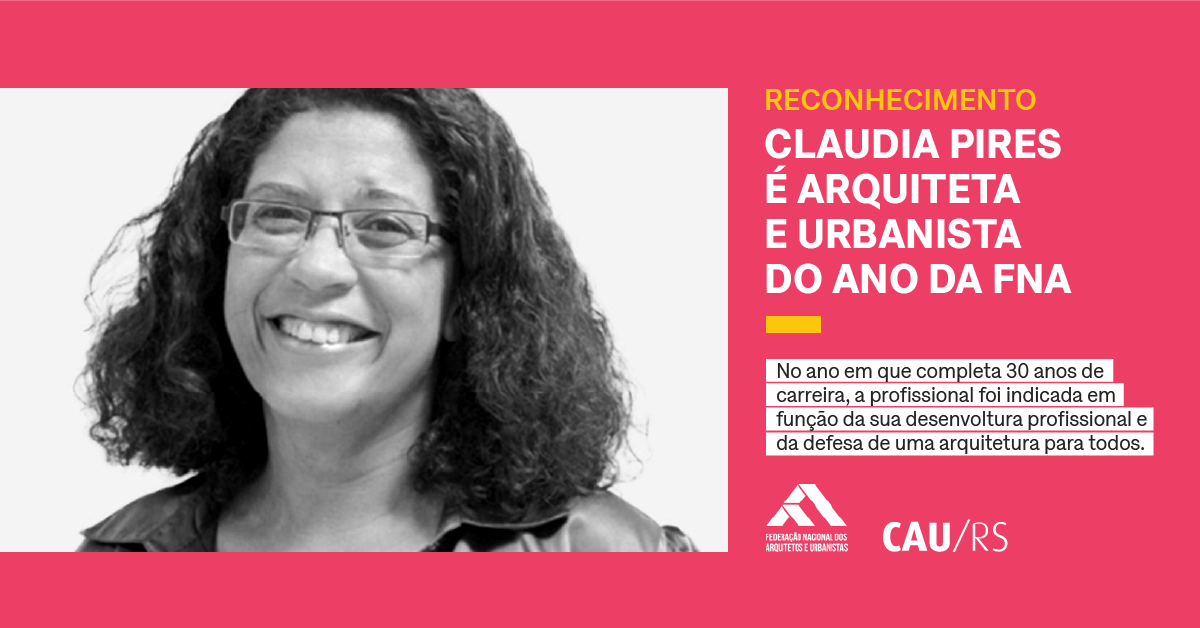 “Claudia é uma grande companheira das lutas pela habitação de qualidade, incentivadora da implantação da ATHIS e articuladora nacional de arquitetos e movimentos sociais. Prêmio merecido, parabéns!”, afirma o presidente do CAU/RS, Tiago Holzmann da Silva.