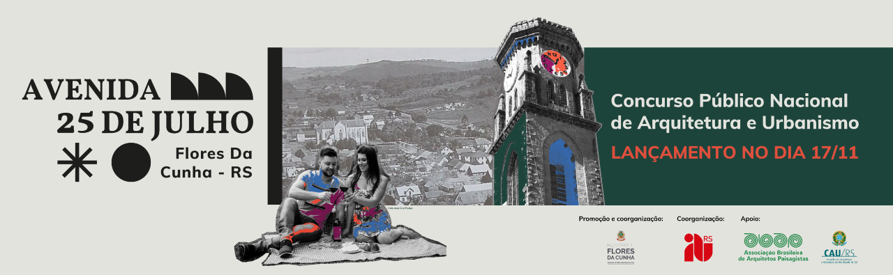A Prefeitura Municipal de Flores da Cunha, em parceria com o Instituto de Arquitetos do Brasil (IAB RS) e com o apoio do Conselho de Arquitetura e Urbanismo (CAU/RS) e da Associação Brasileira de Arquitetos Paisagistas (ABAP), vai promover um Concurso Público Nacional de Projeto de Arquitetura e Urbanismo para requalificar a Avenida 25 de Julho – umas das vias mais importantes da cidade.  O lançamento oficial está marcado para ocorrer na quarta-feira, dia 17 de novembro, às 11 horas, com transmissão ao vivo pelas redes sociais da Prefeitura e do IAB RS.
