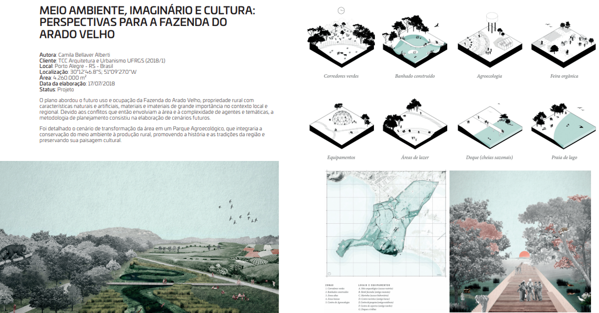 - Projeto: MEIO AMBIENTE, IMAGINÁRIO E CULTURA – PERSPECTIVAS PARA A FAZENDA DO ARADO VELHO, de Camila Bellaver Alberti, para o Trabalho de Conclusão de Curso na Faculdade de Arquitetura e Urbanismo da UFRGS (2018).