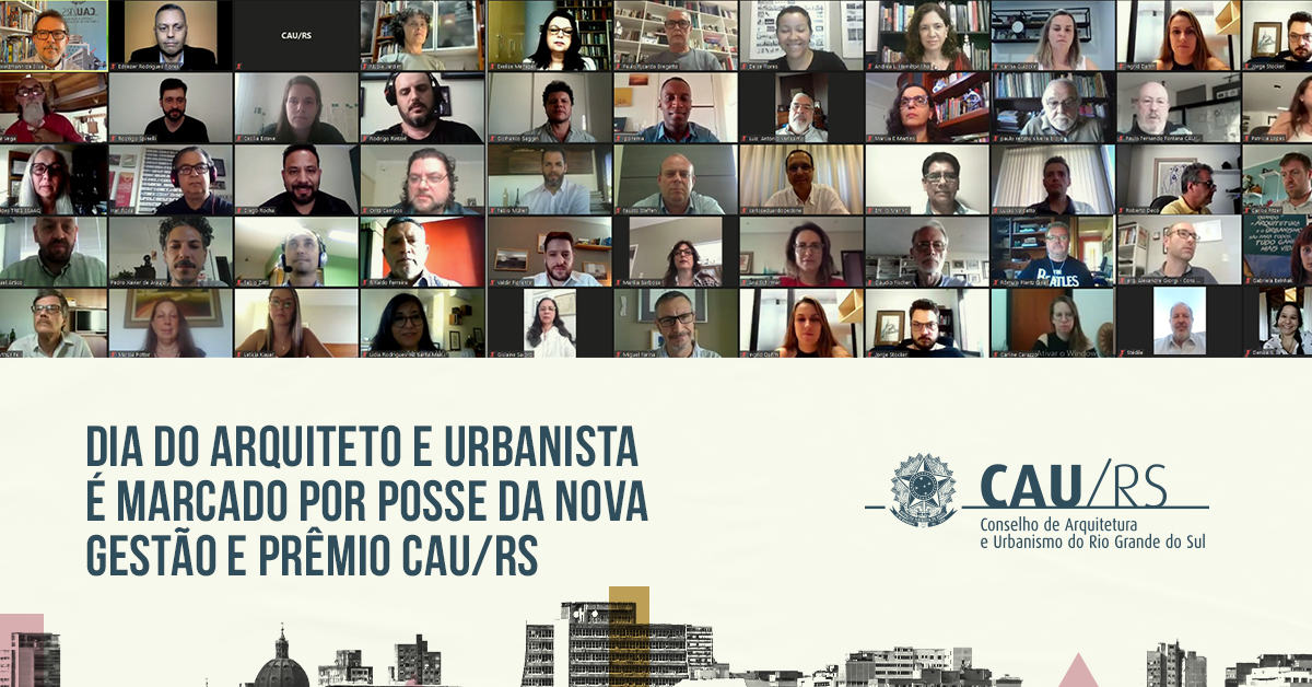 A noite do dia 15 de dezembro de 2020 foi marcada pela posse da nova gestão do Conselho de Arquitetura e Urbanismo (CAU/RS), eleita para o triênio (2021-2023), e pela entrega do Prêmio CAU/RS e revelação do Prêmio Destaque CAU/RS – Briane Bicca.