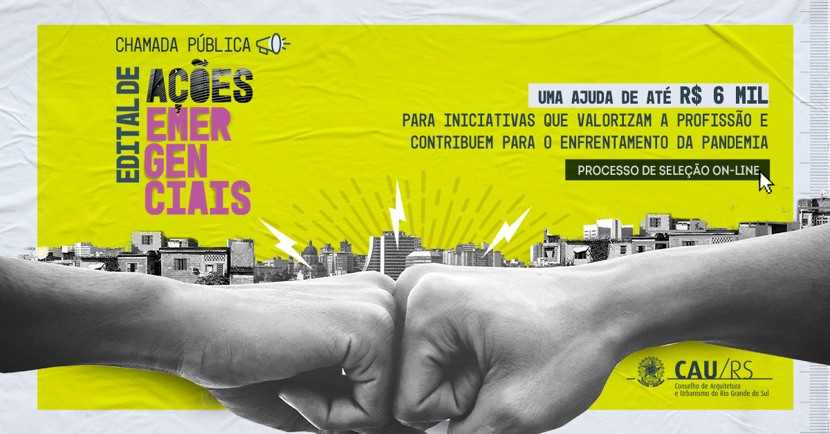 Um desses projetos é o Edital de Ações Emergenciais, que destina vinte cotas de até R$ 3.000 e dez cotas de até R$ 6.000, de um total de R$ 120.000, para enfrentar a pandemia e a crise gerada pela redução da atividade econômica. Busca-se a valorização profissional ao divulgar a urgente necessidade da sociedade em obter acesso ao trabalho de arquitetos e urbanistas, através da promoção da Assistência Técnica para Habitação de Interesse Social (ATHIS), de ações de equidade de gênero, de preservação do patrimônio e suas relações com a cidade saudável, bem como a construção de um futuro melhor para todos.