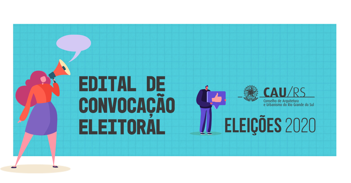A Comissão Eleitoral Nacional do CAU/BR publicou o Edital de Convocação das Eleições do CAU 2020, dando início ao processo de escolha dos conselheiros titulares e suplentes que irão compor os plenários do CAU/BR e dos 27 CAU/UF durante o mandato que começa em 2021 e segue até 2023. O Edital de Convocação traz as regras para as eleições dos 27 conselheiros do CAU/BR representantes das unidades da federação; do conselheiro do CAU/BR representante das Instituições de Ensino Superior e dos 382 conselheiros dos CAU/UF.