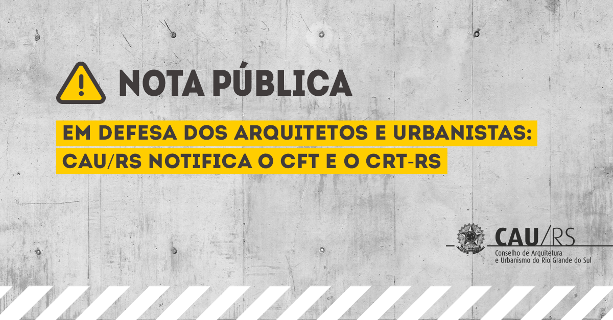 O Conselho de Arquitetura e Urbanismo (CAU/RS) notificou o Conselho Federal dos Técnicos Industriais (CFT) e o Conselho Regional dos Técnicos Industriais do Rio Grande do Sul (CRT-RS), por conta da utilização inadequada de termos e expressões pertinentes aos campos de atuação da Arquitetura e Urbanismo.