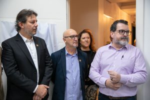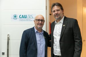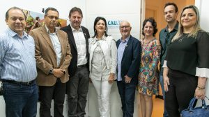 Estiveram presentes os secretários municipais de Cultura, Esporte e Lazer, Marta Zanella; de Desenvolvimento Econômico, Turismo e Inovação, Ewerton Falk; adjunta de Estruturação e Regulação Urbana, Tais Nascimento; conselheiro federal do CAU, Ednezer Flores; coordenador do curso de Arquitetura e Urbanismo da Universidade Franciscana, Francisco Queruz; coordenador do curso de Arquitetura e Urbanismo da UFSM, Fabio Müller; presidente do IAB/RS, Rafael Pavan dos Passos; presidente do IAB/SM, Lídia Rodrigues; presidente do Conselho de Políticas Cultural, Orlando Fonseca; Superintendente da Secretaria Municipal de Mobilidade Urbana, Marcelo Rosses; além de representantes do Coletivo em Defesa do Patrimônio Cultural de Santa Maria; e arquitetos e urbanistas. “Essa inauguração reforça a importância de trazer o fortalecimento da instituição para pensar no coletivo. Estamos abertos para trabalharmos juntos pela cidade”, afirmou Marta, ao representar o executivo municipal.