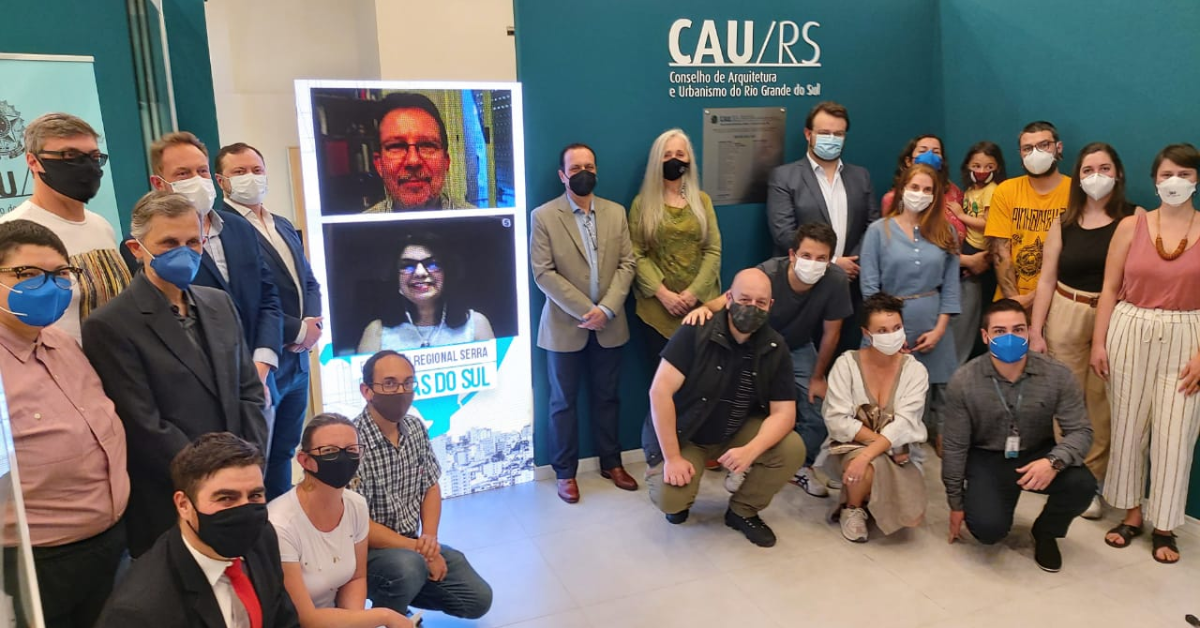 Por conta da pandemia, o momento simbólico de inauguração foi restrito a alguns conselheiros e representantes de autoridades e entidades locais. Remotamente, o presidente do CAU/RS, Tiago Holzmann da Silva, e a vice-presidente, Evelise Jaime de Menezes, celebraram a conquista. “Com a inauguração em Caxias do Sul, que se junta a Santa Maria, Pelotas e Passo Fundo, estamos completando plenamente o compromisso da gestão assumido com todos os profissionais do Estado”, declarou o presidente, lembrando que os escritórios Regionais representam o reconhecimento aos profissionais que atuam em todo o Rio Grande do Sul, qualificando e ampliando a atuação do Conselho.