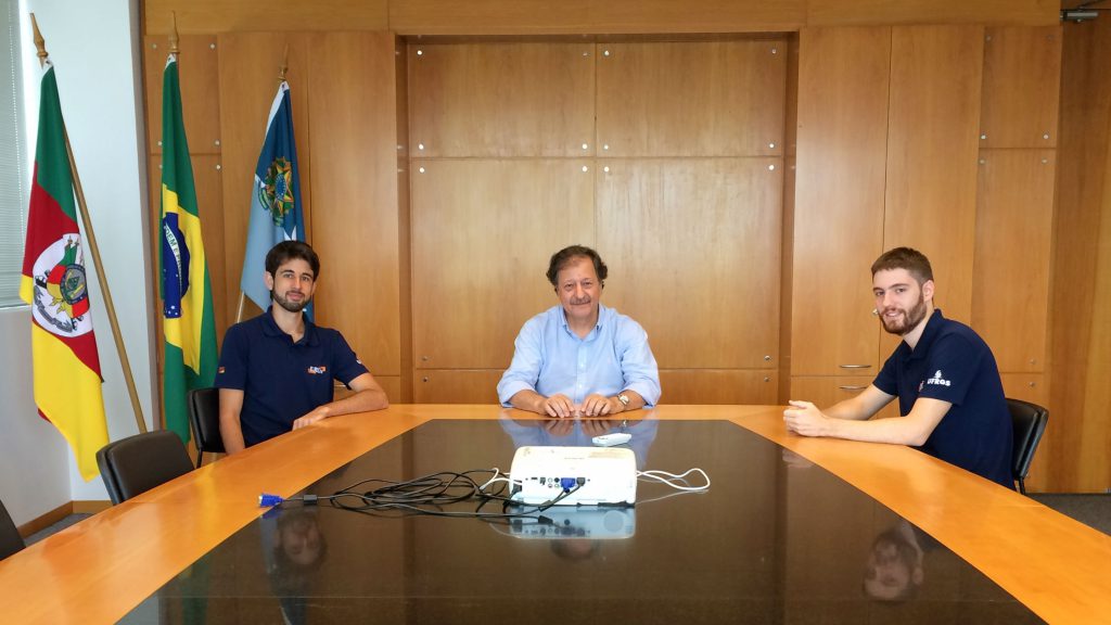 O Conselho de Arquitetura e Urbanismo (CAU/RS), na figura do presidente, arquiteto e urbanista Joaquim Haas, recebeu representantes da EJECiv – Empresa Júnior Engenharia Civil UFRGS, para uma reunião de alinhamento e troca de ideias. No encontro, realizado em 10 de janeiro de 2017, Joaquim Haas conversou com os acadêmicos Aldemo Limberger, presidente da EJECiv, e Vinícius Gulias, diretor Administrativo Financeiro, compartilhando a função do CAU/RS e mostrando as atribuições privativas dos arquitetos e urbanistas e as áreas de atuação compartilhadas com outras profissões prevista pela legislação. Além disso, deu orientações importantes para que a atuação das empresas juniores de engenharia trabalhem em sua área específica e em harmonia com escritórios de arquitetura. “É muito importante o fortalecimento destas relações entre universidade, Conselhos e mercado”, afirma o presidente.