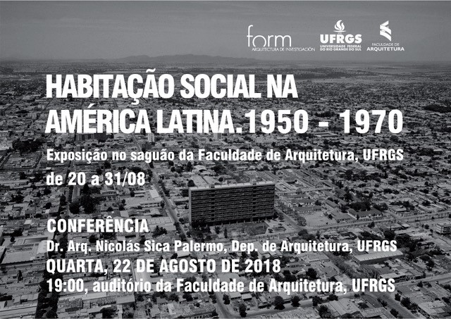 Está aberta até 31 de agosto, no saguão da Faculdade de Arquitetura e Urbanismo na Universidade Federal do Rio Grande do Sul (UFRGS), a exposição “Habitação Social na América Latina – 1950-1970”. A exposição é fruto de um projeto de pesquisa de mesmo nome desenvolvido pelo grupo FORM da Escola Técnica Superior de Arquitectura de Barcelona da Universidade Politécnica de Cataluña.