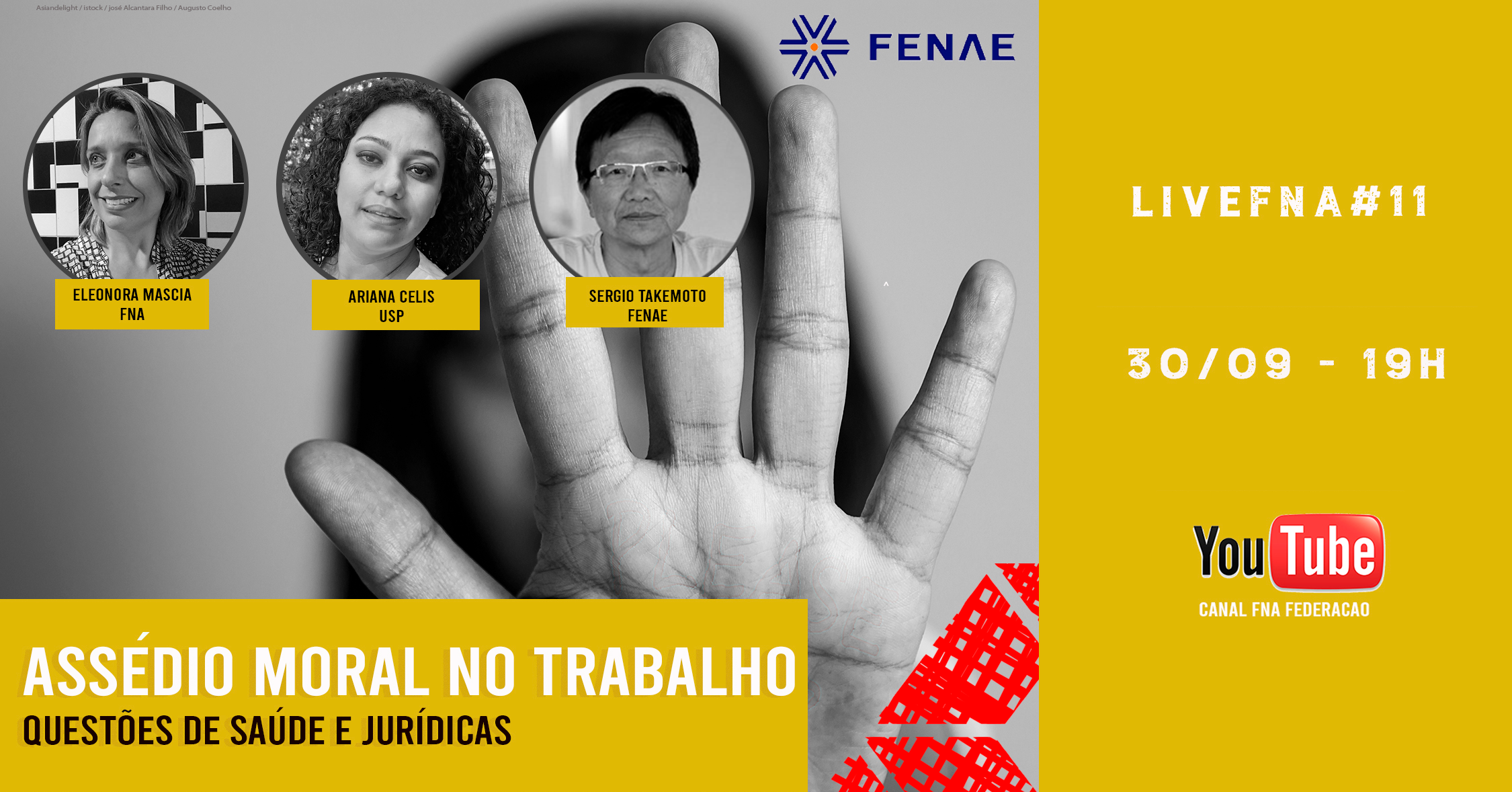 Na próxima quarta-feira (30/09), às 19h, a Federação Nacional dos Arquitetos e Urbanistas (FNA) promove a oitava edição da série de lives que vem realizando em seu canal no YouTube. Assédio moral nas relações de trabalho: questões de saúde e jurídicas terá como convidados o presidente da Federação Nacional das Associações de Pessoal da Caixa Econômica Federal (Fenae), Sergio Takemoto, e a professora e Assistente Social na Faculdade de Saúde Pública da USP, Ariana Celis. A mediação será realizada pela presidente da FNA, arquiteta e urbanista Eleonora Mascia. “O combate a qualquer tipo de assédio precisa ser realizado dentro de uma agenda pelo trabalho decente e condições que considerem equidade no tratamento profissional, inclusive nos aspectos de remuneração e oportunidades de crescimento”, destaca a mediadora.