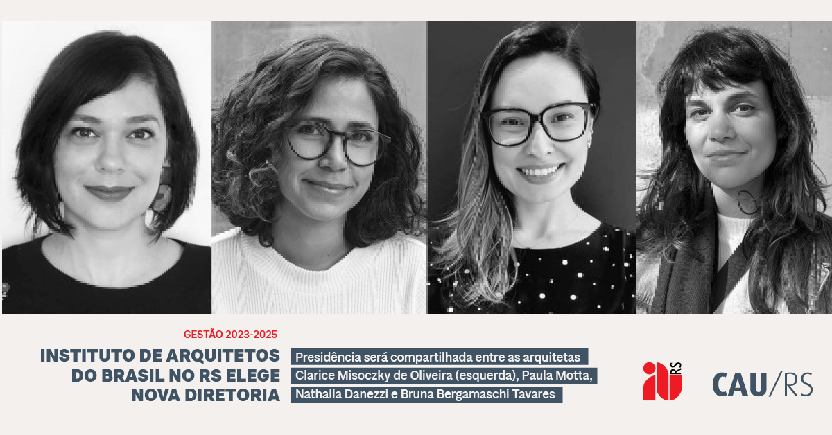 O Instituto de Arquitetos do Brasil (IAB RS) elegeu no último sábado (26/11) a nova direção da entidade para o triênio 2023-2025. Foi eleita a chapa única denominada “IAB Cidade, Cultura e Sociedade”, encabeçada pela nova presidente do IAB RS, Clarice Misocsky de Oliveira.