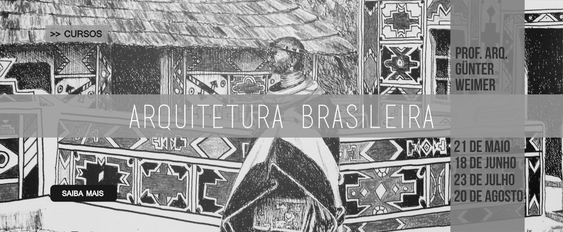 Entre os dias 21 de maio e 20 de agosto ocorrem no IAB RS os quatro módulos do curso Arquitetura Brasileira, com atividades programadas das 9h às 12h30 aos sábados. As aulas com carga horária de 12 horas, serão ministradas pelo arquiteto Gunter Weimer, professor convidado do Programa de Pós-graduação em Urbanismo (PROPUR) da Universidade Federal do Rio Grande do Sul (UFRGS), com doutorado pela Universidade de São Paulo (USP).