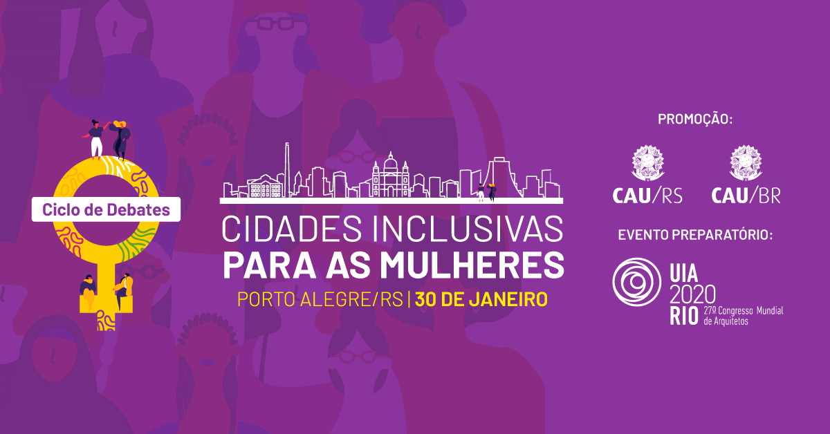 O Conselho de Arquitetura e Urbanismo do Rio Grande do Sul (CAU/RS) promove, em parceria com o CAU/BR e o apoio da Comissão de Desenvolvimento Urbano, da Secretaria de Mulheres da Câmara dos Deputados e do Colegiado das Entidades Nacionais de Arquitetura e Urbanismo, o Ciclo de Debates – Cidades Inclusivas para as Mulheres. O evento será realizado no dia 30 de janeiro, no Auditório do Palácio da Justiça.