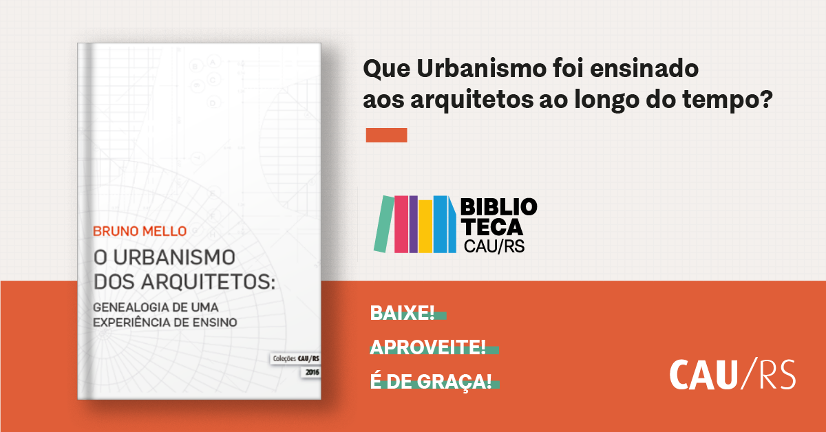 Um dos objetivos do Conselho de Arquitetura e Urbanismo (CAU/RS) é promover a Arquitetura e Urbanismo por meio da experiência, da pesquisa e da literatura. Para isso, o CAU/RS já realizou três edições do Edital de Publicações, e promove a 4ª edição em 2022. Em 2016, um dos selecionados para publicação foi o livro O urbanismo dos arquitetos: genealogia de uma experiência de ensino, de autoria do arquiteto e urbanista Bruno Cesar Euphrasio de Mello.