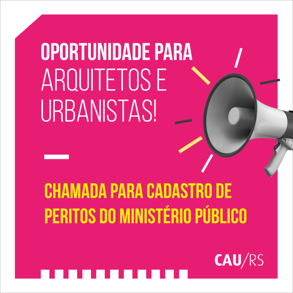 Foi publicado dia 25 de junho no Diário Eletrônico do Ministério Público do Estado do Rio Grande do Sul, pelo Conselho Gestor do Fundo para Reconstituição de Bens Lesados (FRBL), o Aviso 06/2018 que abre chamada para cadastro de peritos em algumas especialidades, entre elas, Arquitetura e Urbanismo.