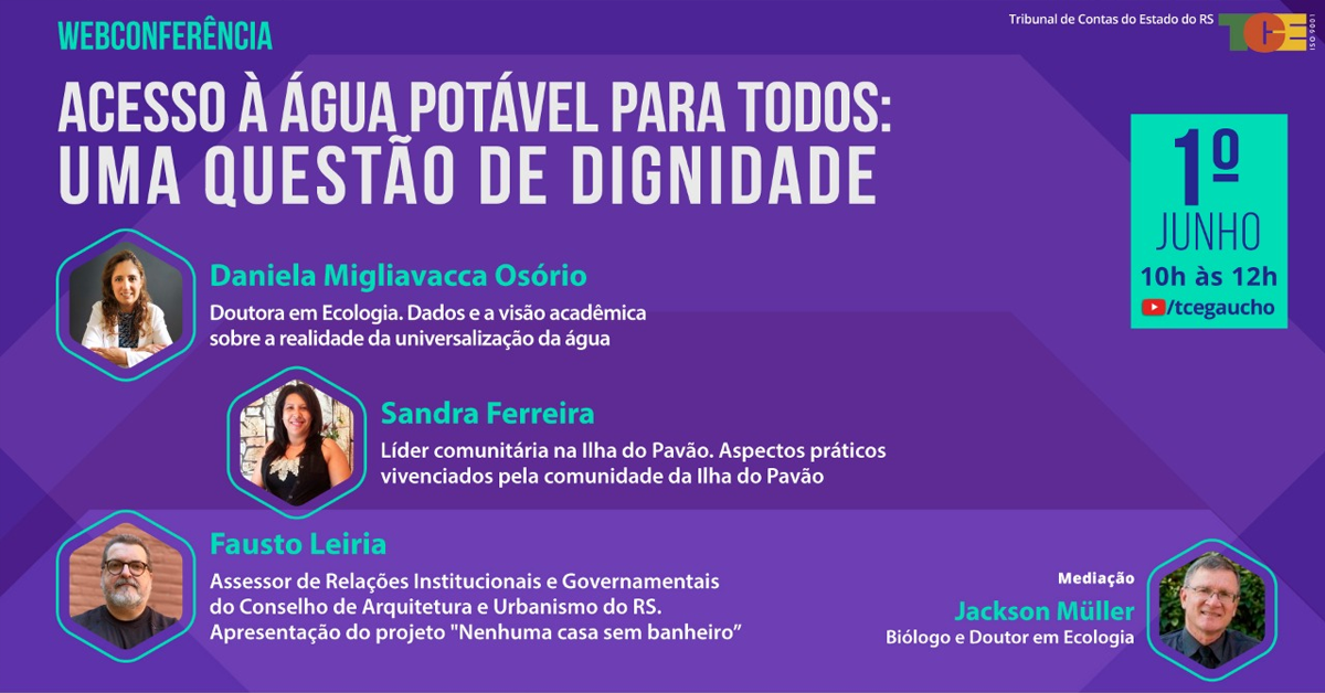 Na próxima terça-feira, 1º de junho, o projeto Nenhuma Casa sem Banheiro, criado pelo Conselho de Arquitetura e Urbanismo (CAU/RS), será apresentado em uma webconferência realizada pelo Tribunal de Contas do Estado do Rio Grande do Sul (TCE). O assessor de relações institucionais e governamentais do CAU/RS, Fausto Leiria, é o convidado para apresentar o programa NCSB em nome do Conselho. A transmissão, intitulada “Acesso à água potável para todos: uma questão de dignidade“, será realizada no canal YouTube do TCE a partir das 10h. Os interessados poderão emitir certificado de participação acessando esse link.