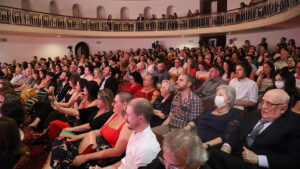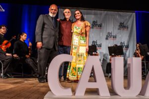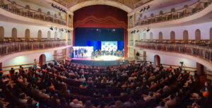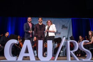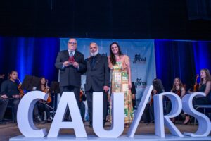 A movimentação no icônico Theatro São Pedro começou por volta das 18h30 e, em seguida, a Orquestra Jovem da Fábrica de Sonhos começou sua apresentação. Na sequência, subiram ao palco os presidentes das respectivas entidades: Tiago Holzmann da Silva (CAU/RS), Rafael Passos (IAB RS), Gislaine Saibro (AAI Brasil/RS), Evandro Medeiros (Saergs) e Raquel Hagen (AsBEA-RS). Em sua fala, Tiago agradeceu ao quadro funcional do Conselho, pela organização e realização do evento, e lembrou também o homenageado da 4ª edição do Prêmio CAU/RS, arquiteto e urbanista Luiz Antonio Machado Verissimo (in memoriam). “O que realizamos hoje em nome da manutenção da qualidade do ensino, devemos ao Verissimo”, afirmou.
