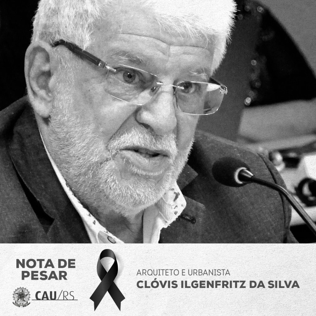O Conselho de Arquitetura e Urbanismo (CAU/RS) comunica com profundo pesar o falecimento, aos 80 anos, do arquiteto e urbanista Clovis Ilgenfritz da Silva na noite de sábado (23/11), vítima de um quadro de fibrose pulmonar. Clovis deixa três filhos, Letícia (19), Camilo (44) e Tiago (48). O velório ocorre hoje, das 13h às 22h, no Plenário Otávio Rocha da Câmara de Vereadores de Porto Alegre, e a cerimônia de cremação será na segunda-feira pela manhã, das 8h às 11h, no Crematório Saint Hilaire, em Viamão, na Região Metropolitana.