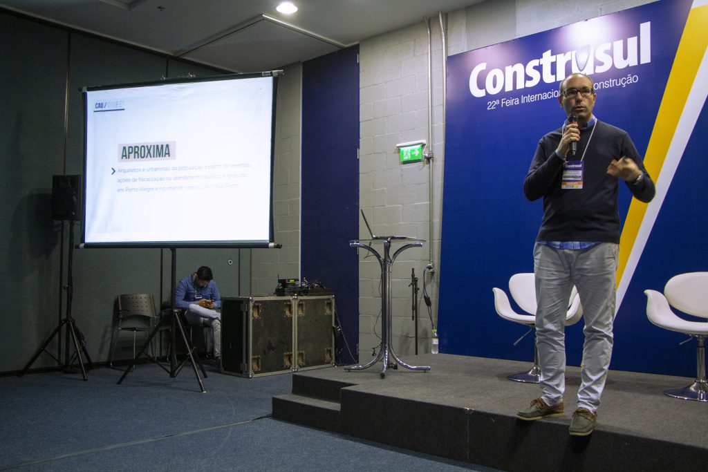O Conselho de Arquitetura e Urbanismo (CAU/RS) promoveu nesta quinta-feira (01/08) palestras sobre Tabela de Honorários e elaboração de contratos de serviços de Arquitetura e Urbanismo na 22ª edição da Feira Internacional da Construção – Construsul, em Porto Alegre. A abertura do evento foi realizada pelo conselheiro Alexandre Couto Giorgi.