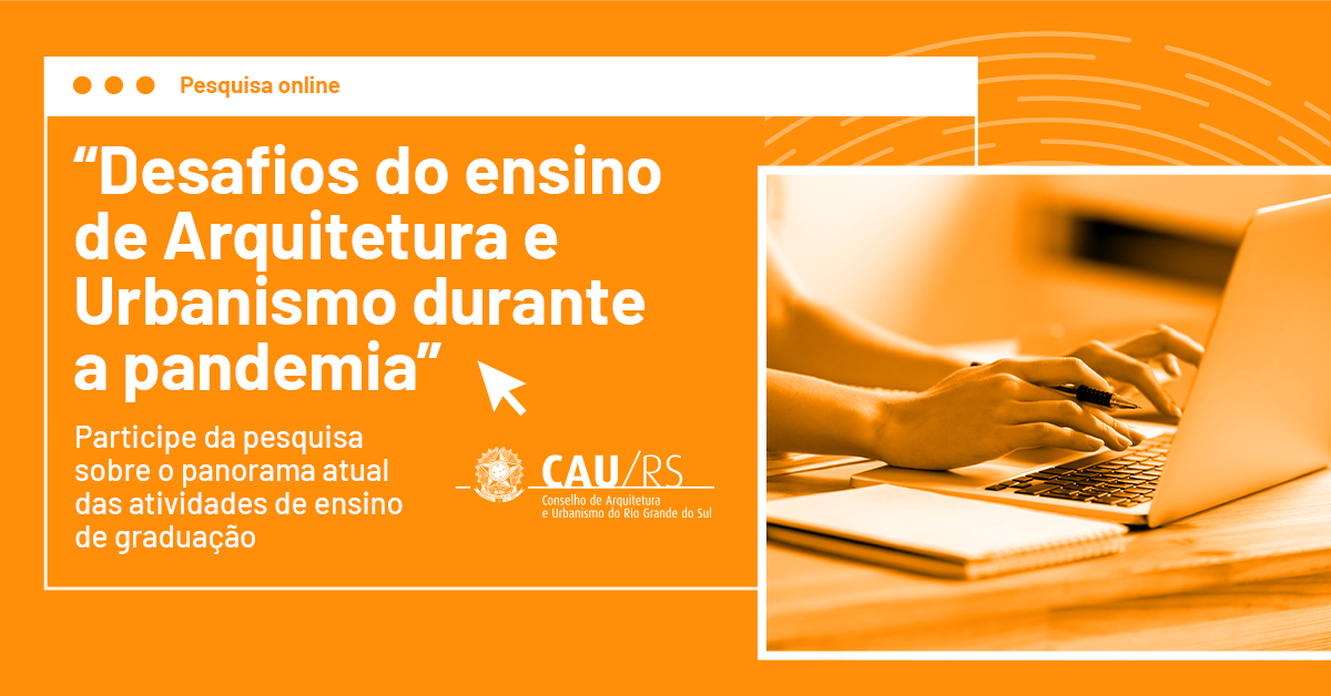 Por isso, a Comissão de Ensino e Formação do Conselho de Arquitetura e Urbanismo (CEF – CAU/RS) lança a segunda edição do questionário “Cursos de Arquitetura e Urbanismo do RS diante da COVID-19”. O objetivo é obter um panorama atual das atividades de ensino de graduação. A primeira edição foi realizada em setembro de 2020.