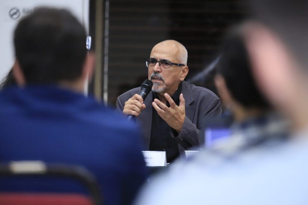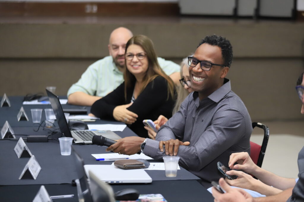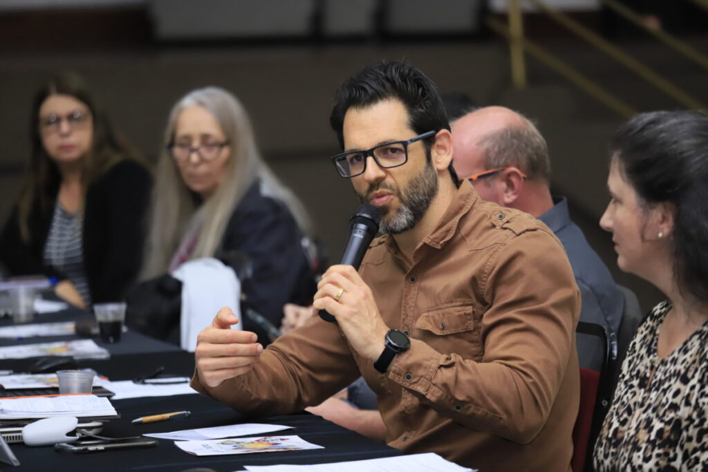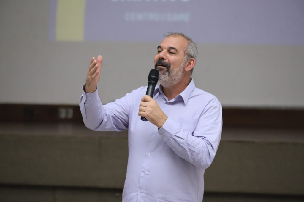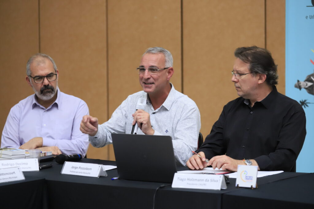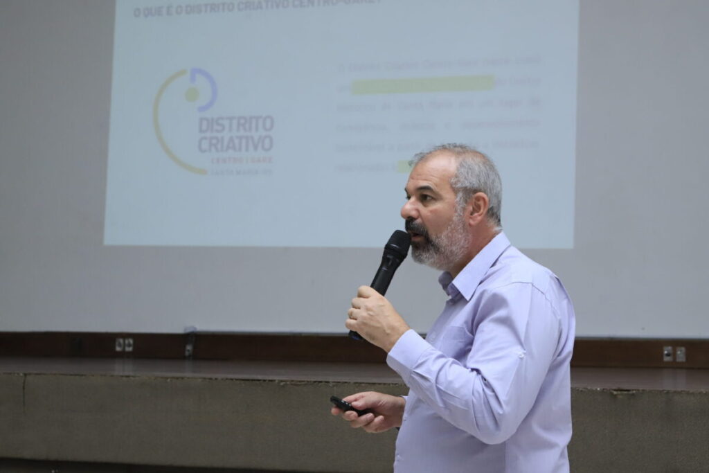 O vice-prefeito Rodrigo Décimo realizou uma apresentação sobre o projeto Distrito Criativo Centro-Gare, cuja proposta é ser um movimento de transformação do Centro Histórico de Santa Maria. Ele detalhou os objetivos estratégicos e ações planejadas da iniciativa, como transformar a Gare da Viação Férrea e revitalizar o patrimônio histórico da região.
