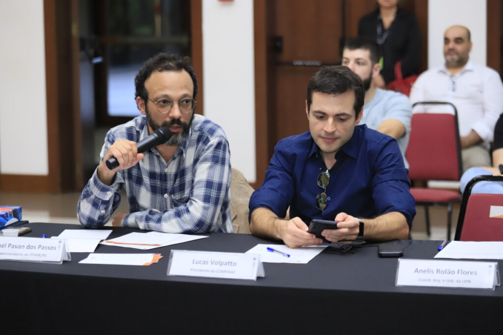 O tema do patrimônio e a importância da atuação de arquitetos e urbanistas nesta área compôs um breve relato feito pelos conselheiros Fábio Müller, Lídia Rodrigues, Pedro Araújo e também pela ex-conselheira do CAU/RS, Priscilla Quesada.