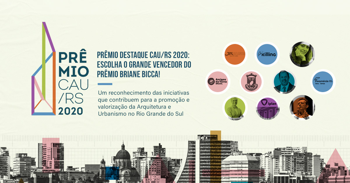 Está lançada a segunda etapa do Prêmio CAU/RS: após a indicação de iniciativas e a seleção dos projetos que representam as quatro categorias, chegou a hora de escolher o vencedor do Prêmio Destaque – Prêmio Briane Bicca.