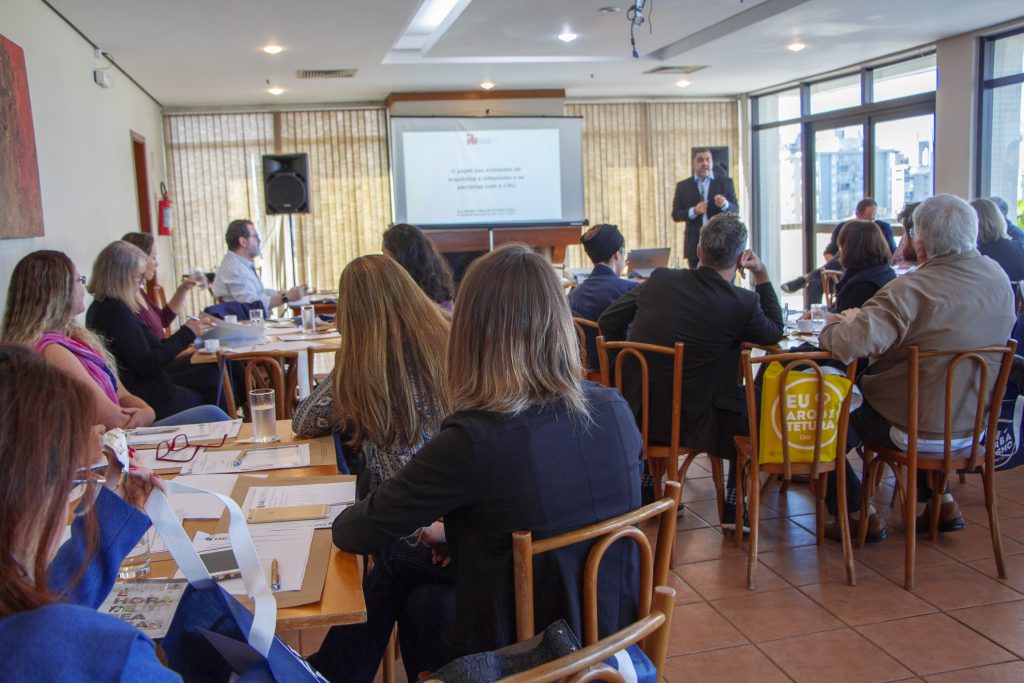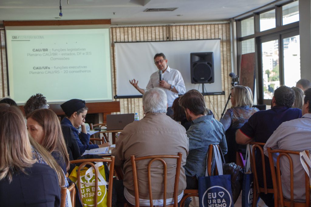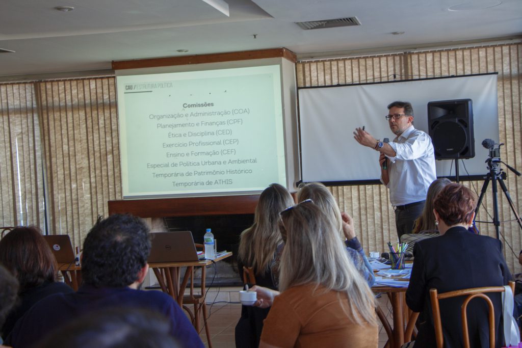 No turno da manhã, os representantes das entidades e núcleos conheceram a estrutura do Conselho em uma visita guiada. Após, o presidente do Instituto de Arquitetos do Brasil (IAB Nacional), arquiteto e urbanista Nivaldo de Andrade Júnior, falou sobre o papel das entidades e das parcerias com o CAU. Pela tarde, o presidente do CAU/RS, arquiteto e urbanista Tiago Holzmann da Silva, apresentou a sistemática de trabalho do Conselho, sua estrutura organizacional e administrativa e atividades dos conselheiros e das Comissões.