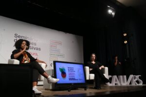 Durante a explanação referente à fala da Regina Cohen, Flávia e Lelei pontuaram a mudança no termo mais adequado para se referir às pessoas com deficiência. No passado, utilizava-se o termo “portadores”, até que se percebeu que portar refere-se a objetos e que a deficiência deve ser entendida como parte de alguém.