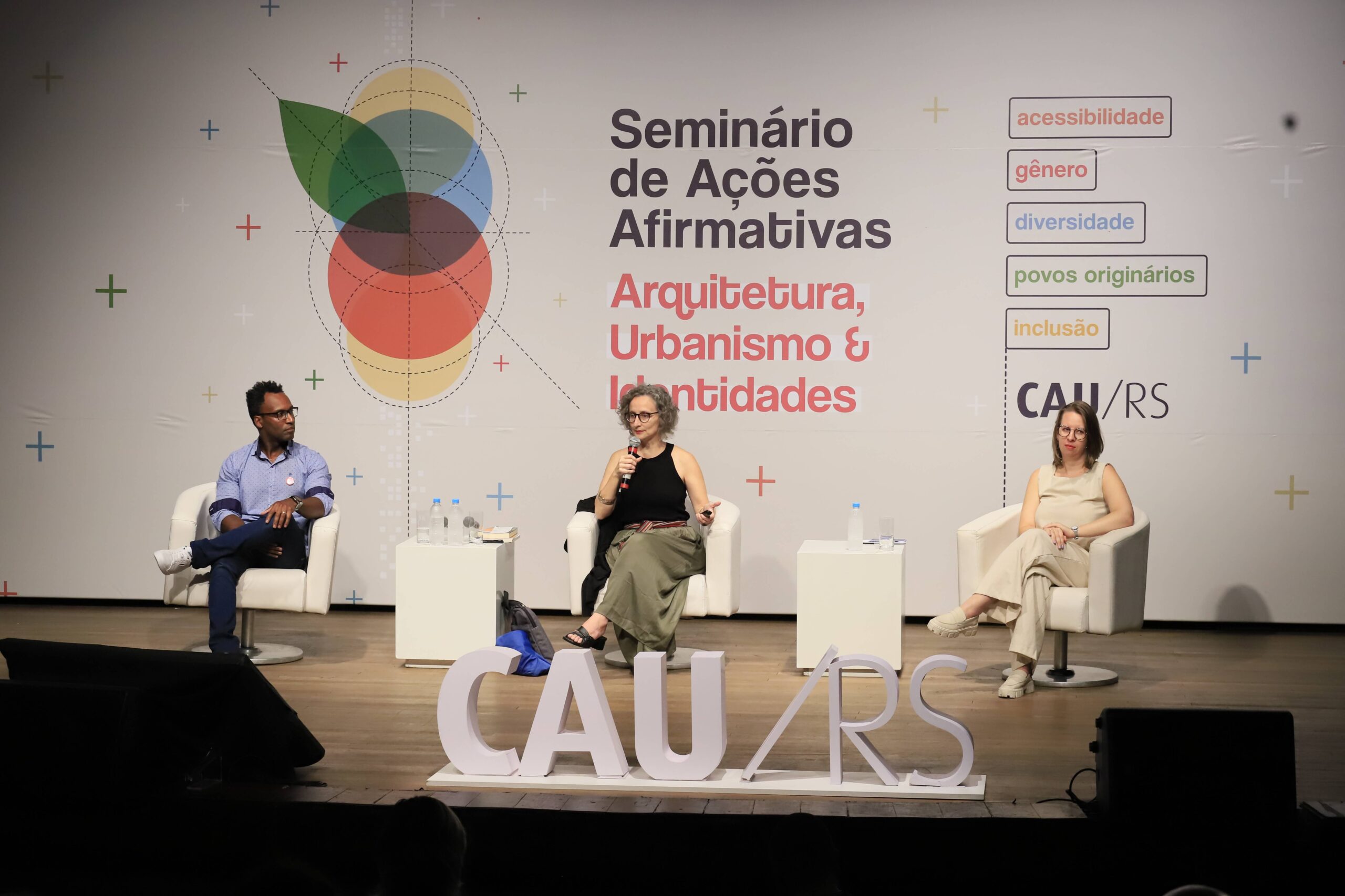 O Seminário de Ações Afirmativas, realizado nos dias 06 e 07 de março, no Teatro da AMRIGS em Porto Alegre, reuniu arquitetos e urbanistas, estudantes e profissionais de outras áreas interessados em dialogar sobre os assuntos do encontro: acessibilidade, gênero, diversidade, povos originários e inclusão.