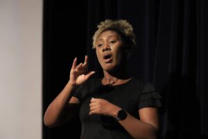 A jornalista Lelei Teixeira, defensora da pauta do nanismo e da pessoa com deficiência, destacou que é movida pelo desejo de viver em uma cidade inclusiva, diversa, acessível, saudável, generosa e bonita, que ofereça o máximo de autonomia a todos os seus moradores. Ela também pontuou a importância da Lei de Acessibilidade, provocando o público presente a refletir sobre a efetividade e amplo conhecimento da existência da regulamentação.