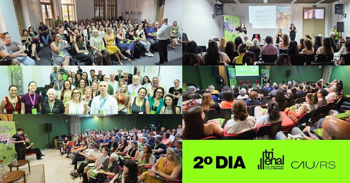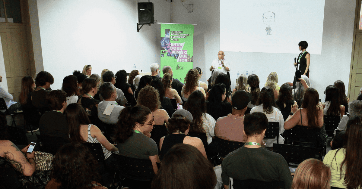 A programação do segundo dia da 2ª Trienal de Arquitetura e Urbanismo do RS movimentou novamente a Casa de Cultura Mario Quintana na quinta-feira (27/11), com atividades sobre planejamento estratégico, arquitetura social, paisagismo, inovação e crise climática. Ao longo do dia, oficinas, palestras, debates, cinema e lançamentos de livros reuniram profissionais e estudantes em diferentes salas da CCMQ.